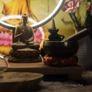 Chuông xoay – chuông thiền – chuông tụng bằng đồng đủ site – tặng dùi cao cấp và vòng đệm
